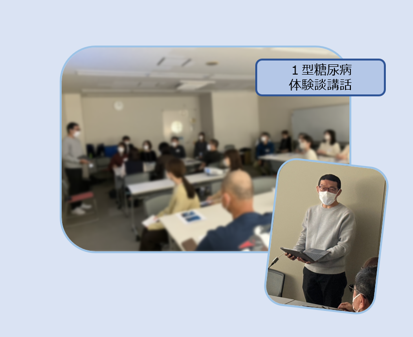 1型糖尿病体験談としてノボ・ノルディスクのスタッフさんよりご講話していただきました。1型糖尿病と診断されてからの人生のあゆみや体験談、病気との付き合い方についてお話いただきました。