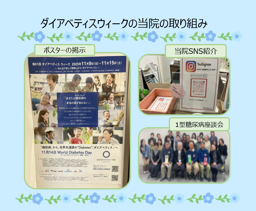 当院では、ポスターの掲示・当院SNSの紹介・1型糖尿病座談会の開催を行いました。