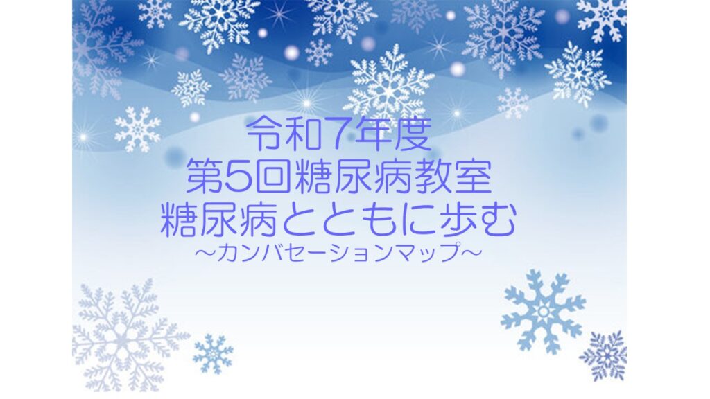次回の糖尿病教室はR8年2月9日(月)、テーマは「糖尿病合併症」を予定しております。ご興味のある方は、スタッフまでお声掛け下さい。宜しくお願い申し上げます。