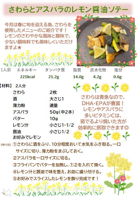 さわらとアスパラのレモン醤油ソテー|ブログ